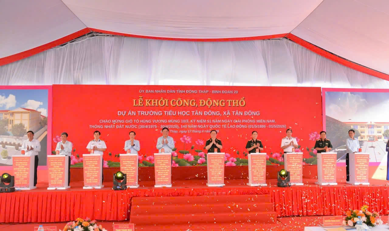 Nhân dịp này, đoàn công tác đã dự Lễ khởi công Trường Tiểu học Tân Đông do Binh đoàn 20 (Bộ Quốc phòng) tài trợ với mức đầu tư 49 tỷ đồng, gồm 20 phòng học, nhà hiệu bộ (khối hành chính và quản trị), nhà đa năng, nhà ăn, nhà xe và các vật chất phụ trợ kèm theo. Công trình đáp ứng cho gần 700 học sinh tại địa phương, góp phần phục vụ nhu cầu phát triển của địa phương.