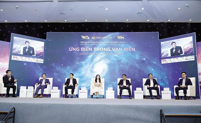 | Báo Đầu tư phát huy thế mạnh, tạo hướng đi riêng với hoạt động tổ chức hội thảo, diễn đàn, sự kiện, talkshow… Trong ảnh: Các diễn giả thảo luận tại Diễn đàn Cấp cao Cố vấn tài chính Việt Nam lần thứ hai – năm 2024, do Báo Đầu tư tổ chức |