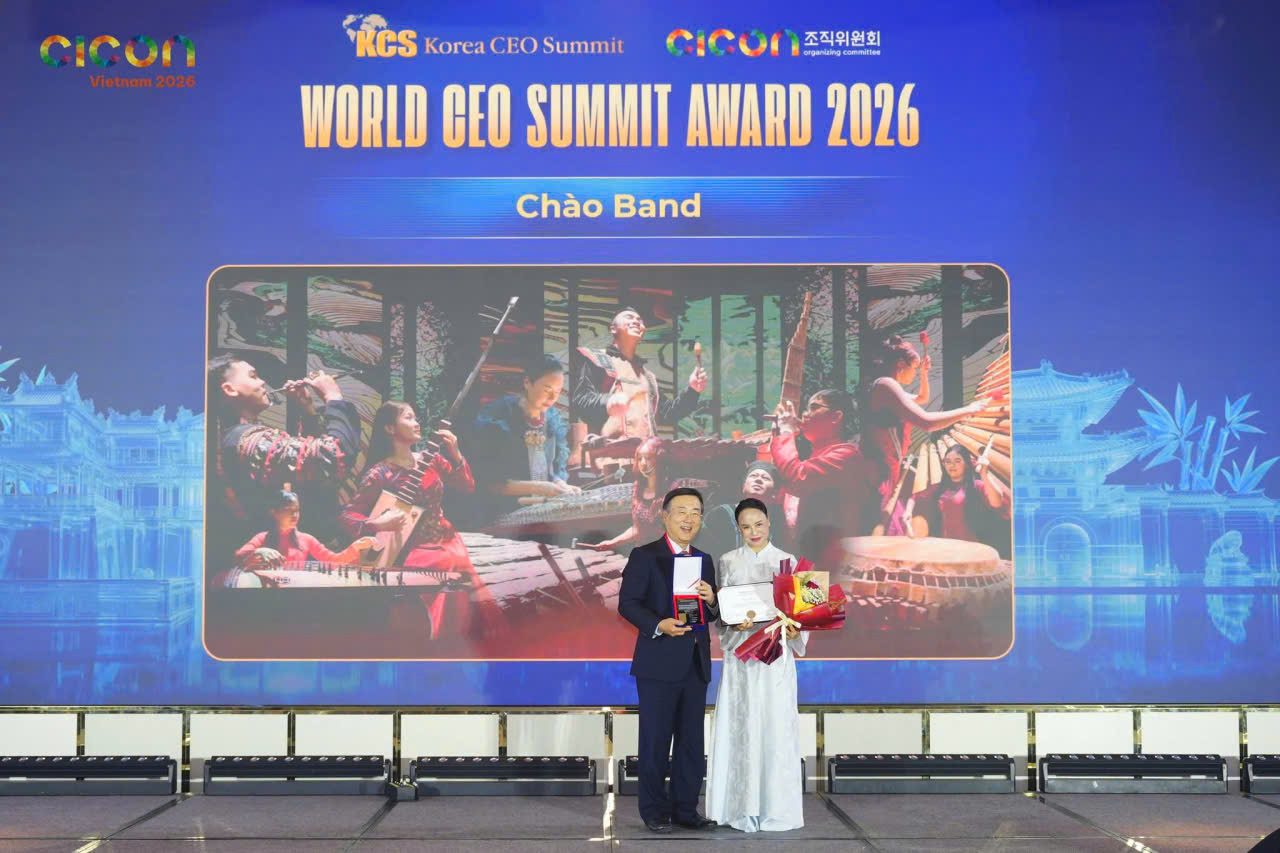 Đại diện đơn vị hoạt động trong lĩnh vực nghệ thuật Chào Band vinh dự nhận giải thưởng quốc tế năm 2026.