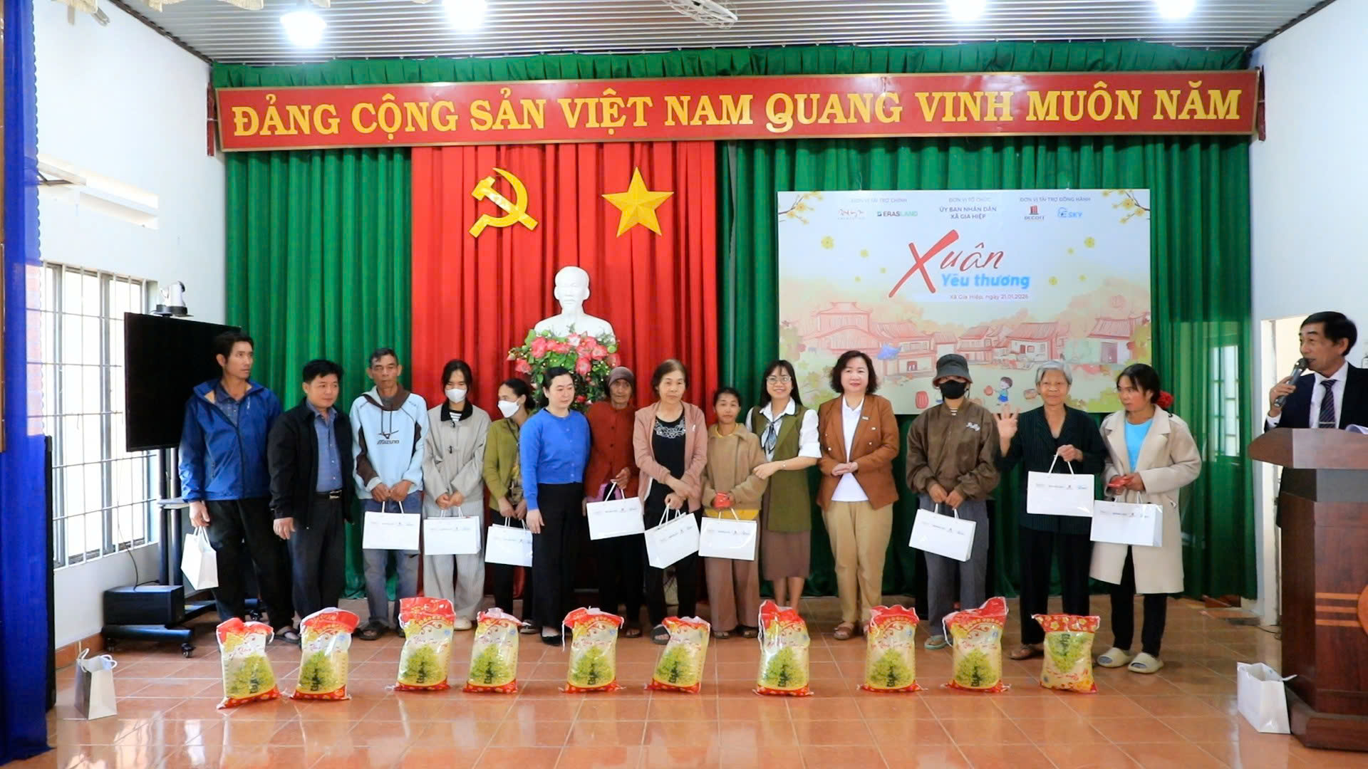 Hoạt động trao quà được tổ chức với sự phối hợp chặt chẽ giữa ERAS LAND và chính quyền địa phương. Trước khi chương trình diễn ra, công tác rà soát, lập danh sách các hộ gia đình có hoàn cảnh khó khăn đã được địa phương thực hiện kỹ lưỡng, đảm bảo đúng đối tượng, đúng nhu cầu. Mỗi phần quà gồm các nhu yếu phẩm thiết yếu phục vụ sinh hoạt hằng ngày, góp phần giúp các gia đình giảm bớt áp lực chi tiêu trong những ngày giáp Tết, chuẩn bị một cái Tết đầy đủ và ấm áp hơn.